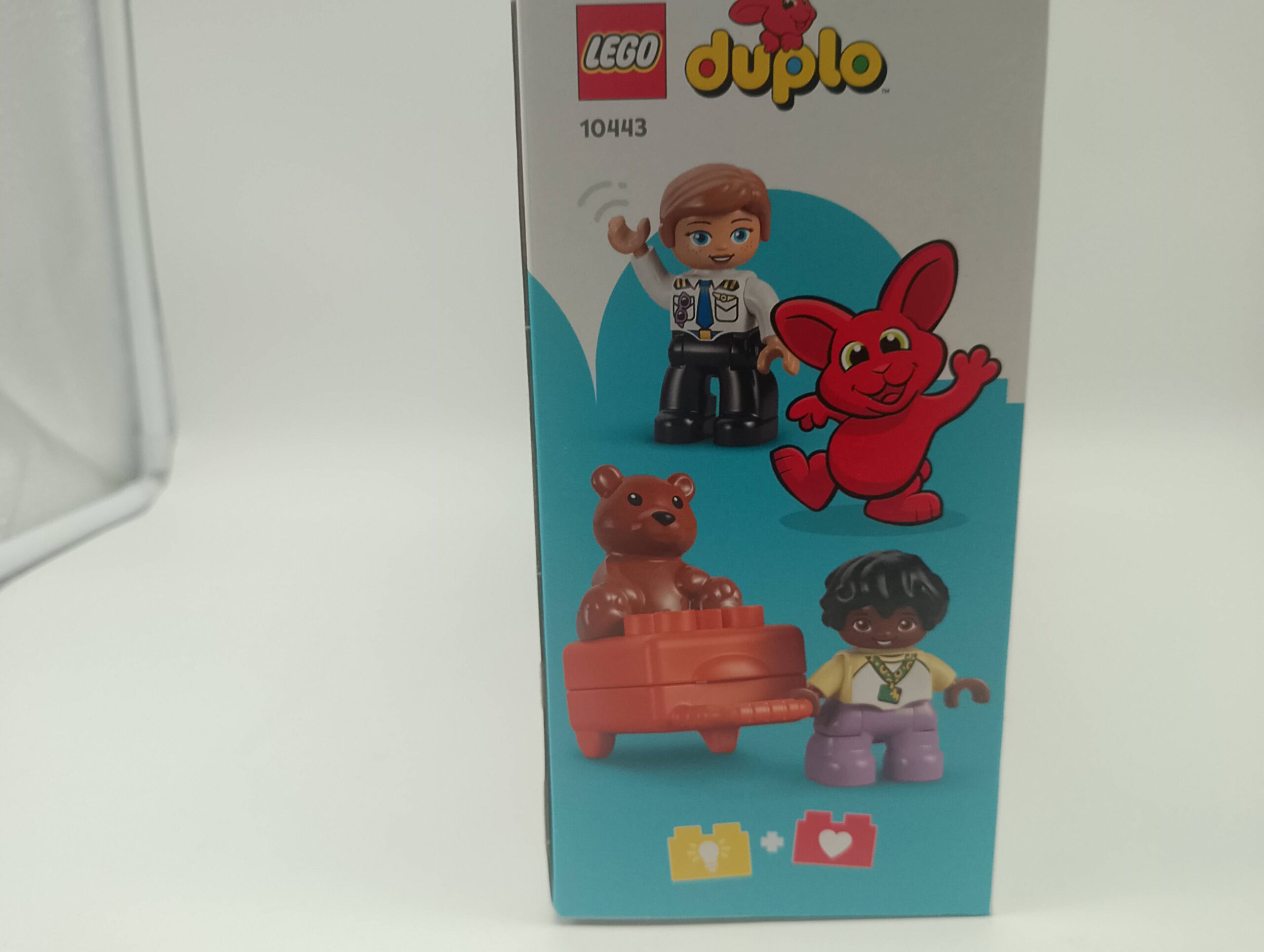 Kleine Entdecker können so tun, als würden sie ihren Koffer packen, ihn beim Check-in aufgeben und an der Sicherheitskontrolle durchleuchten lassen. Das Gepäck rutscht anschließend die Rinne hinunter, während der Tower den Überblick über die Flüge behält. Der rollende Flieger bietet Platz für den Piloten, das Kind und sogar den LEGO® DUPLO® Teddy – so steht spannenden Flugabenteuern nichts mehr im Weg.