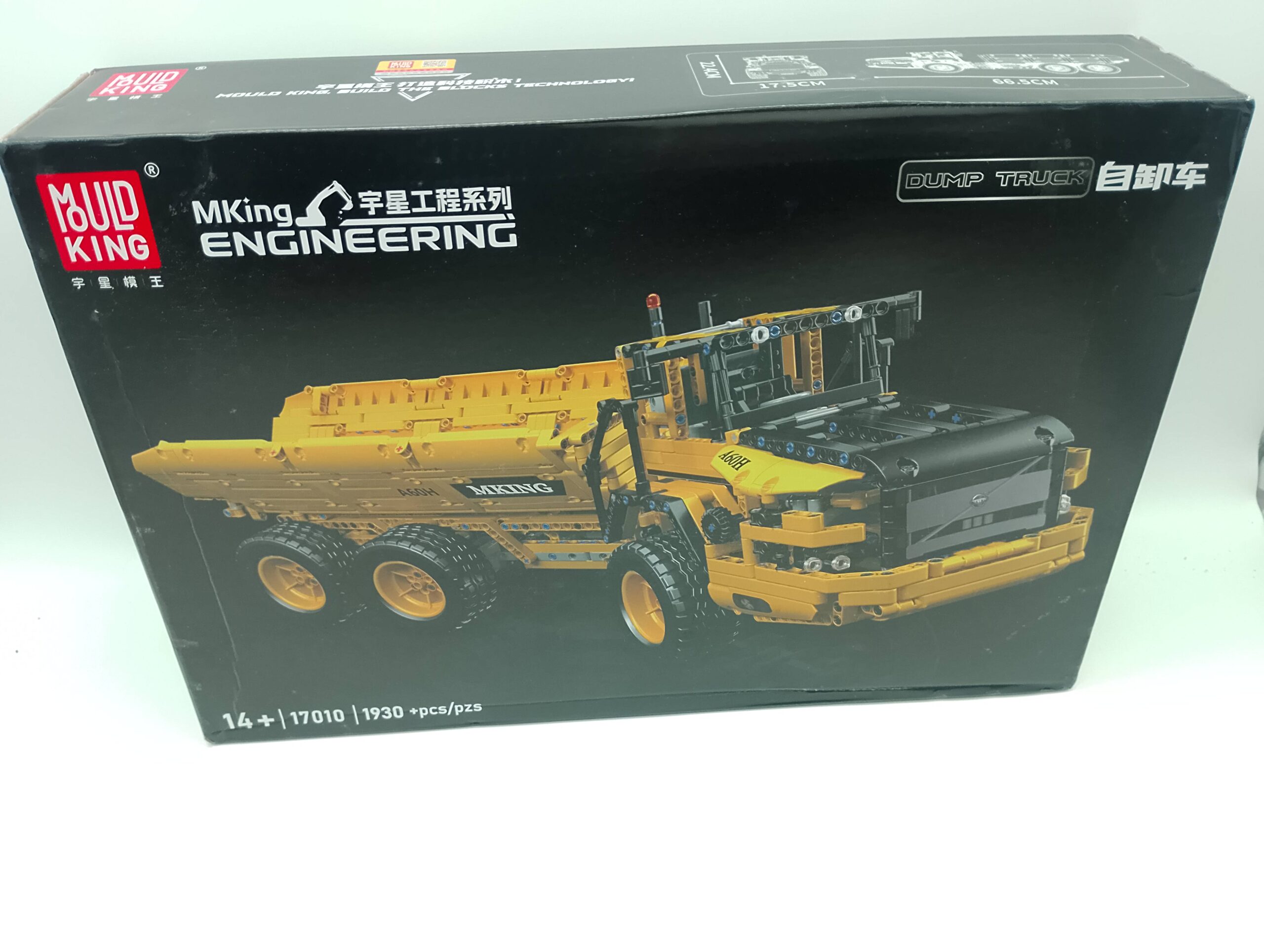 Das Modell besteht aus über 1.800 Teilen, misst mehr als 60 cm in der Länge und ist mit zahlreichen motorisierten Funktionen ausgestattet. Steuern Sie Fahrt, Lenkung und die doppeltwirkende Kippmulde bequem per Fernbedienung.